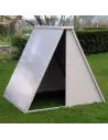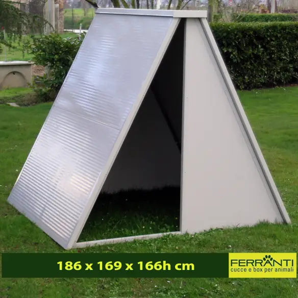 - Robuste Struktur: Verzinkte Blechprofile rahmen die Struktur ein und garantieren Stärke und Haltbarkeit. Der Stall ist so konzipiert, dass er widrigen Witterungsbedingungen standhält und einen soliden Schutz für die untergebrachten Tiere bietet.