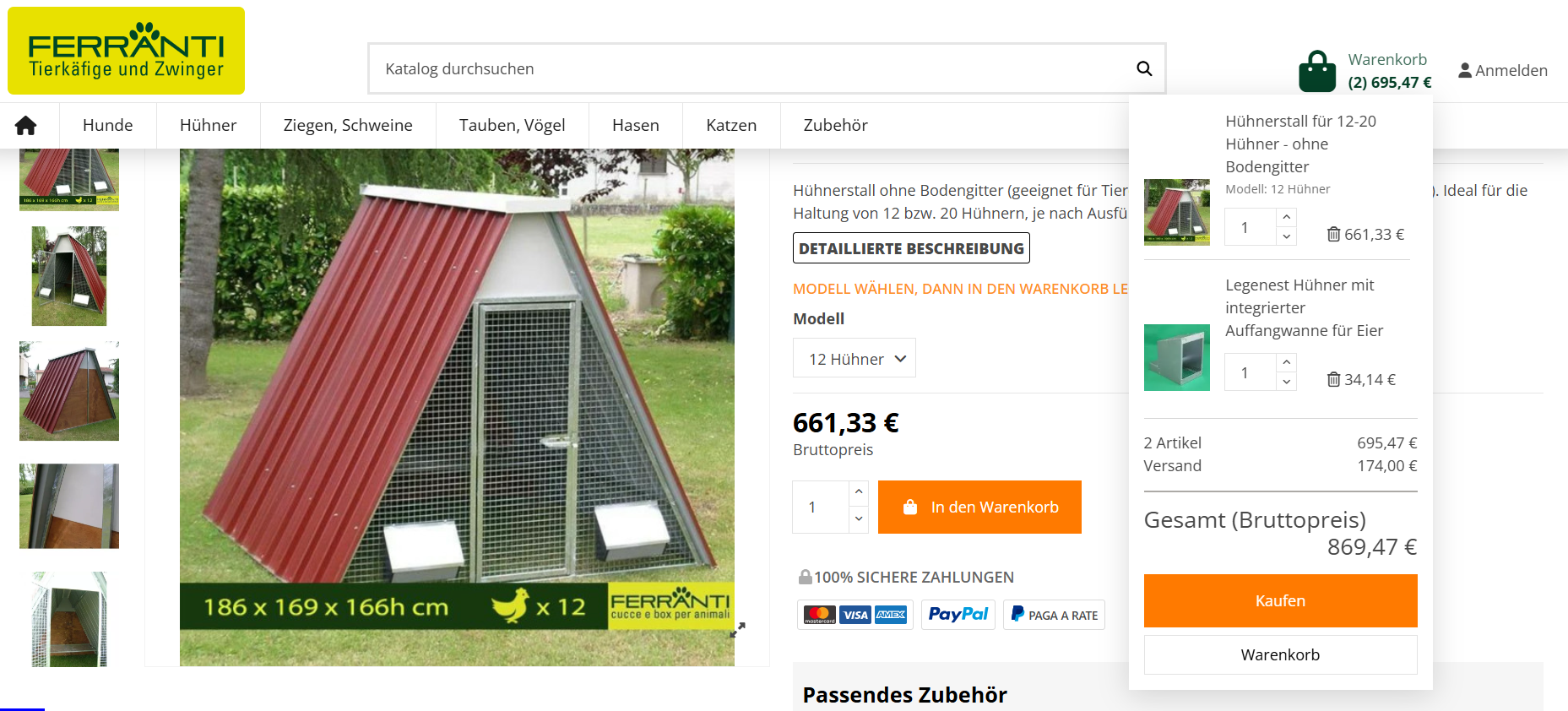 Seleziona la specie animale e la categoria di prodotto desiderata nella homepage o nel menu in alto. Ogni prodotto ha una pagina informativa dettagliata con utili informazioni per l'acquisto.