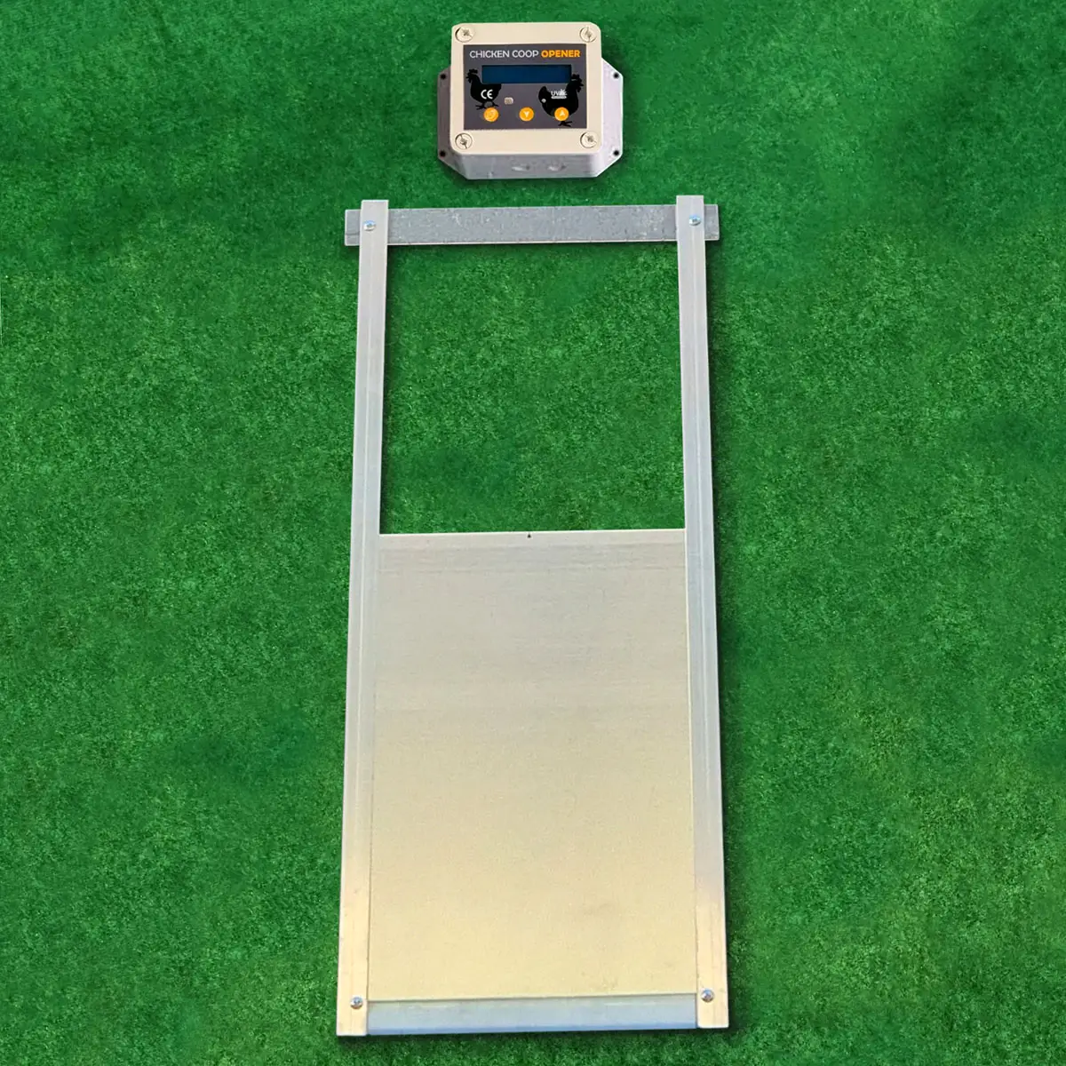 Dieser Bausatz für eine automatische Hühnerklappe besteht u.a. aus einer Steuereinheit und einer Aluminiumtür mit Führungsschienen und ermöglicht ein automatisches schließen und öffnen des Hühnerstalls zu vorgegebenen Zeiten. Somit sind Ihre Hühner zuverlässig nachts vor Fressfeinden geschützt, auch wenn Sie nicht vor Ort sind.
