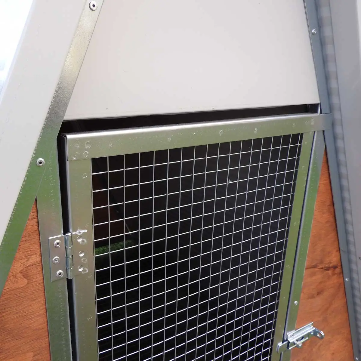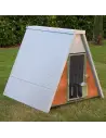 - Das Dach ist aus 3,5 cm dicken Isolierplatten gefertigt und bietet den Tieren somit optimalen Schutz vor Kälte und Hitze. Standardmäßig ist die Farbe der Isolierplatten Weiß. Diese kann aber auf Wunsch auch gern in Grün oder in Holzoptik geändert werden.