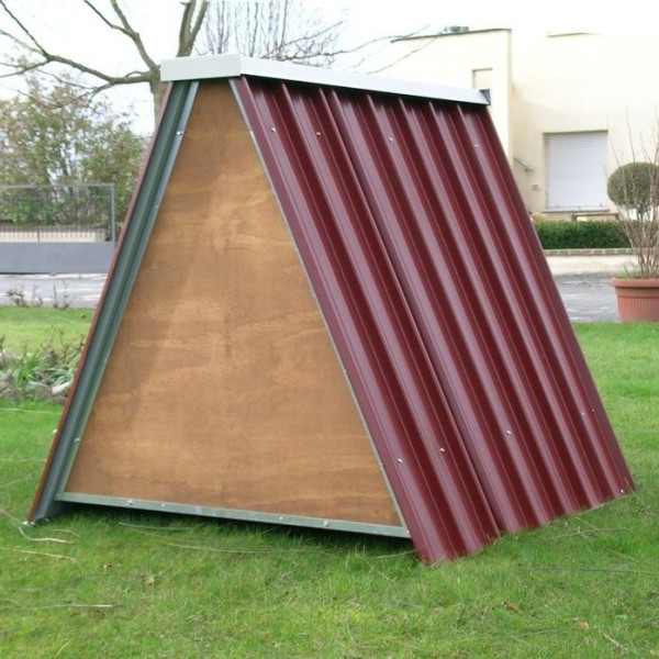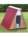- Die Türe hat eine Größe von 38 x 79 cm. Die Rückwand ist aus imprägniertem Marinesperrholz und das Dach aus rotem Trapezblech gefertigt, was Stabilität und Langlebigkeit garantiert.