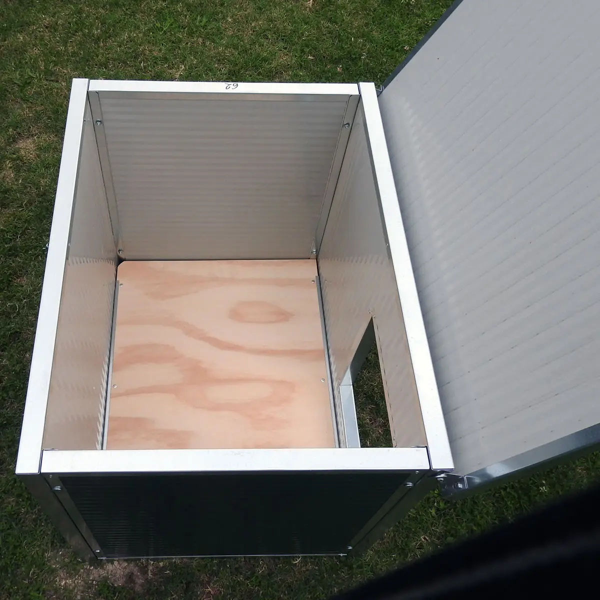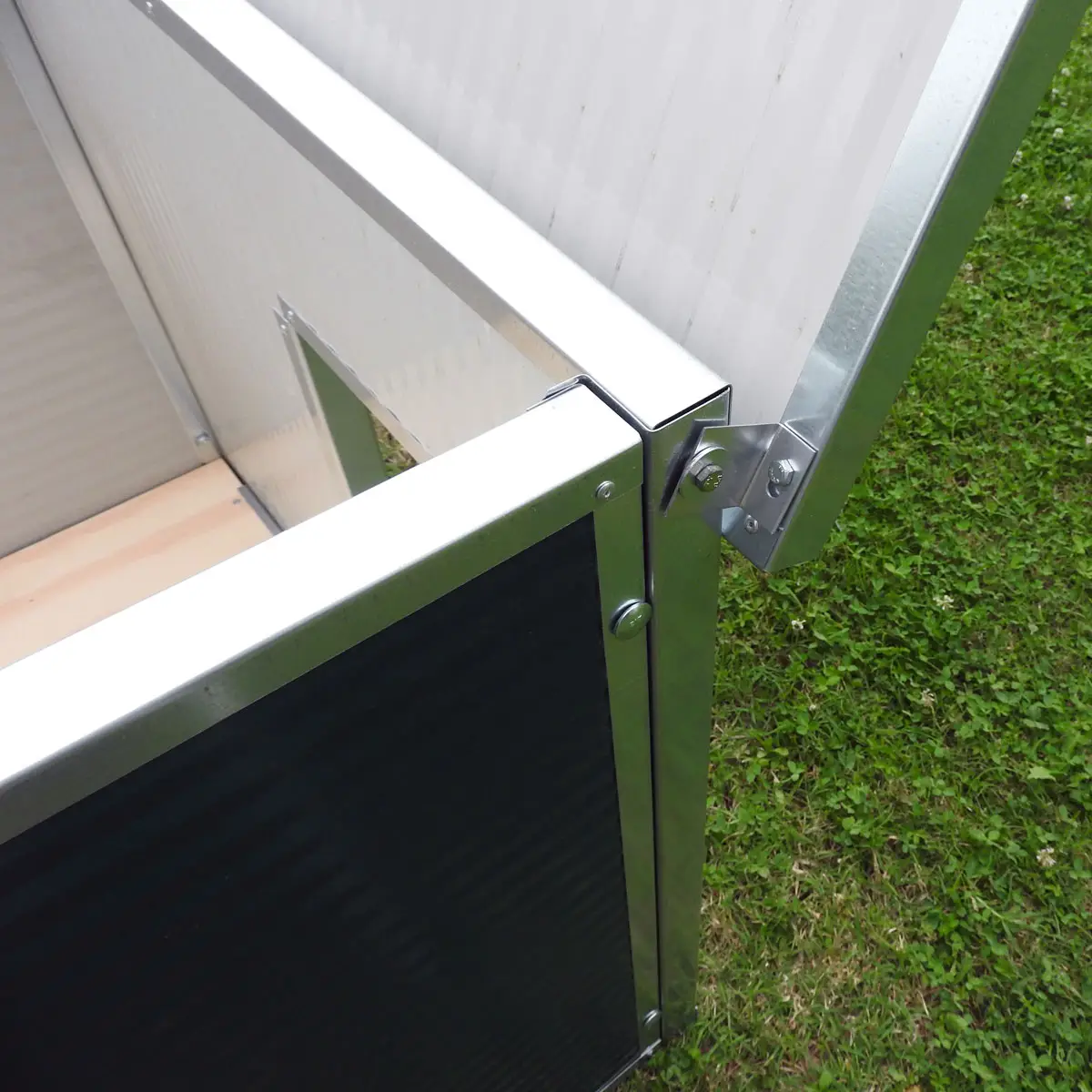 - Hundehütte Outdoor isoliert, Größe klein – gefertigt aus 3,5 cm dicken Isolierpaneelen, eingefasst in stabile Metallprofile für höchste Haltbarkeit und Wärmedämmung.