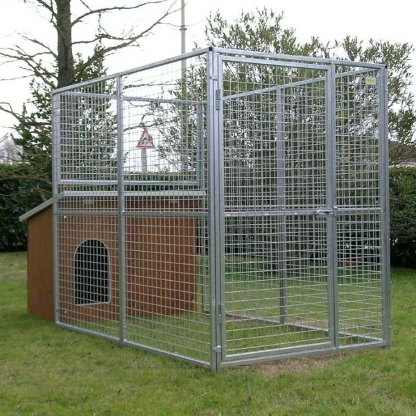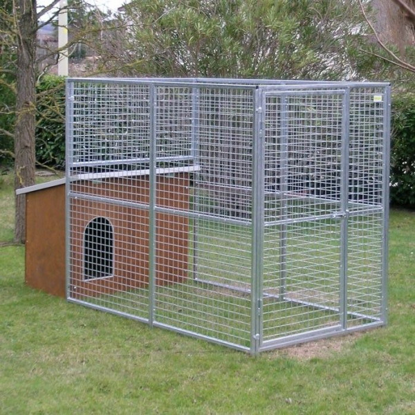 - Das Gehege des Zwingers ist 170 cm hoch und besteht aus feuerverzinkten Gitterpaneelen mit einer Maschenweite von 5 x 5 cm. und hat eine Drahtstärke von 3,9 mm. Das Tor ist bereits mit einem Schlossriegel ausgerüstet. Dieser Bereich kann unkompliziert durch weitere Paneele erweitert werden.