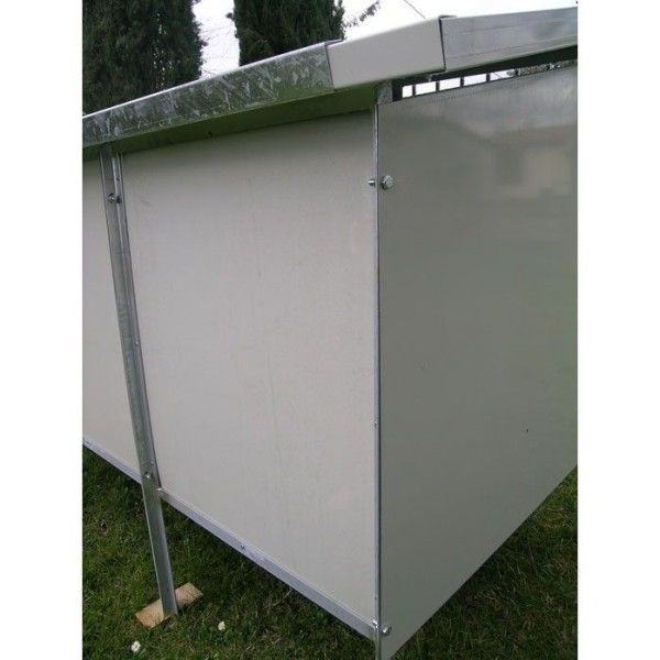 - Dach aus Isolierplatten, Durchmesser 3,5 cm, mit Blechprofilen eingerahmt mit seitlichem Vorsprung von ca. 4-5 cm.