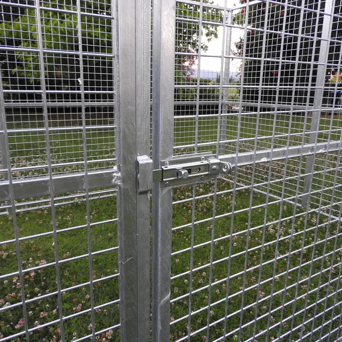 Gehege für Volieren aus feuerverzinktem, elektrogeschweißtem Draht und Tor mit stabilem Schlossriegel; mit und ohne Dach aus Isolierpaneelen erhältlich.