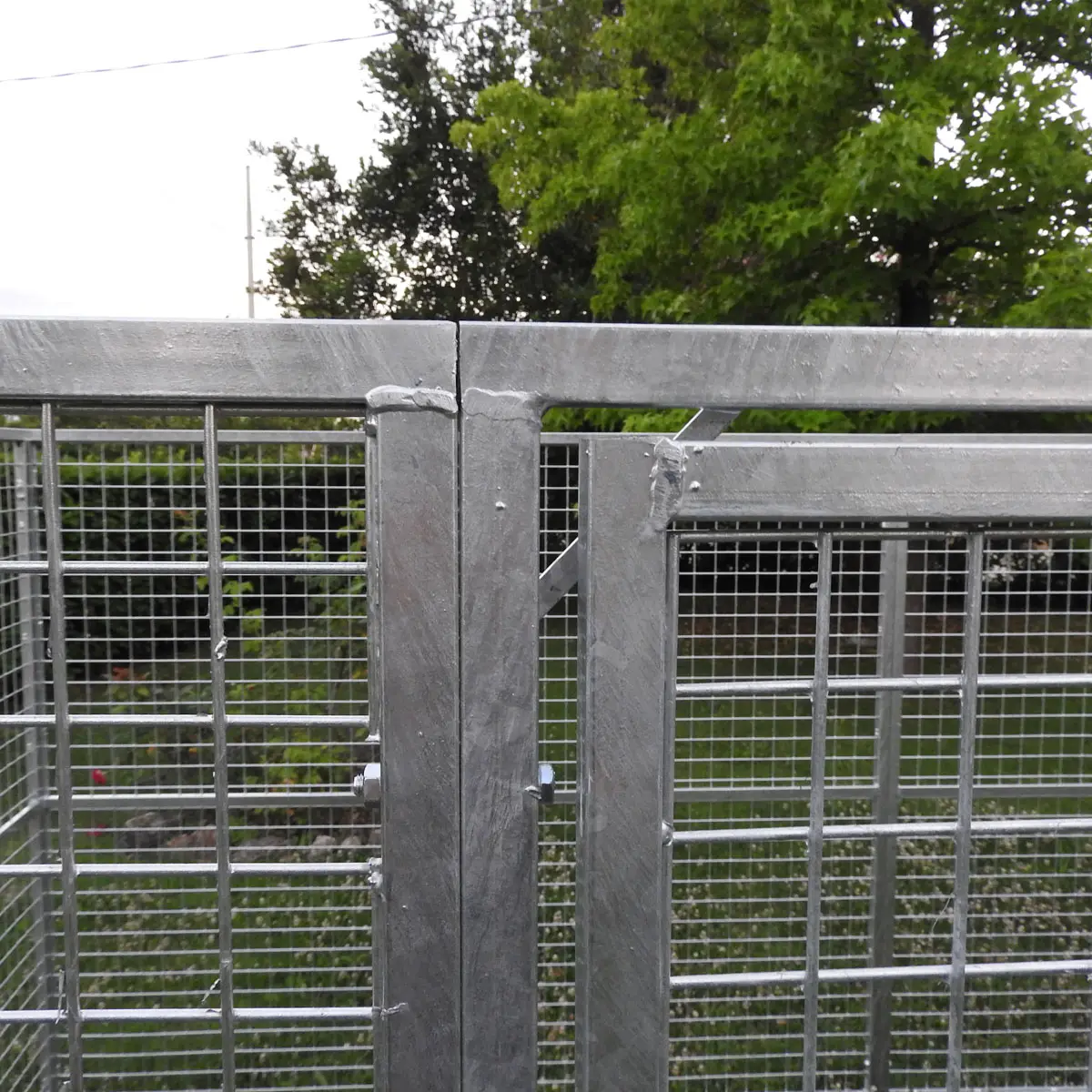 Gehege für Hunde aus feuerverzinktem, elektrogeschweißtem Gitter und Tor und stabilem Schlossriegel; mit und ohne Dach aus Isolierpaneelen erhältlich.