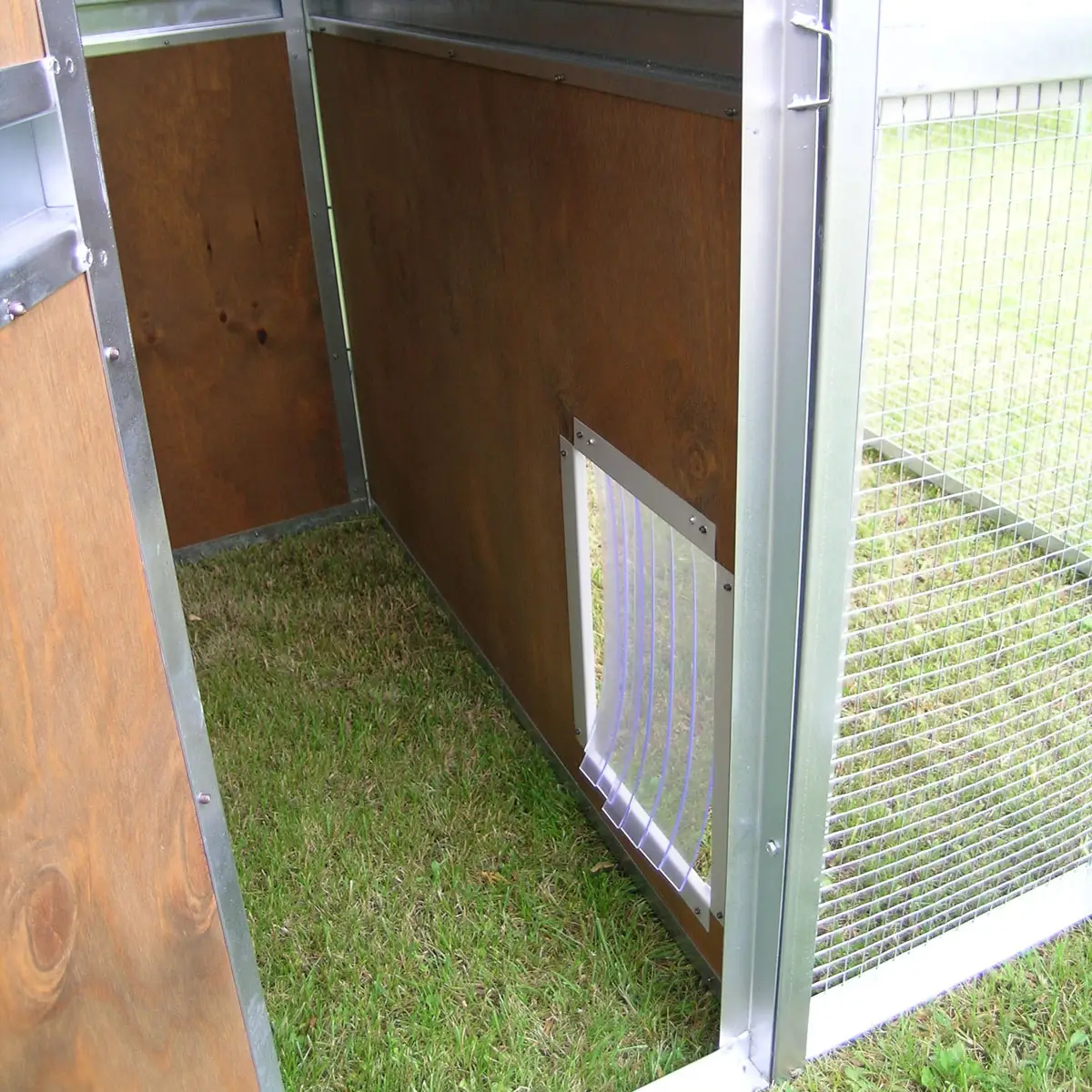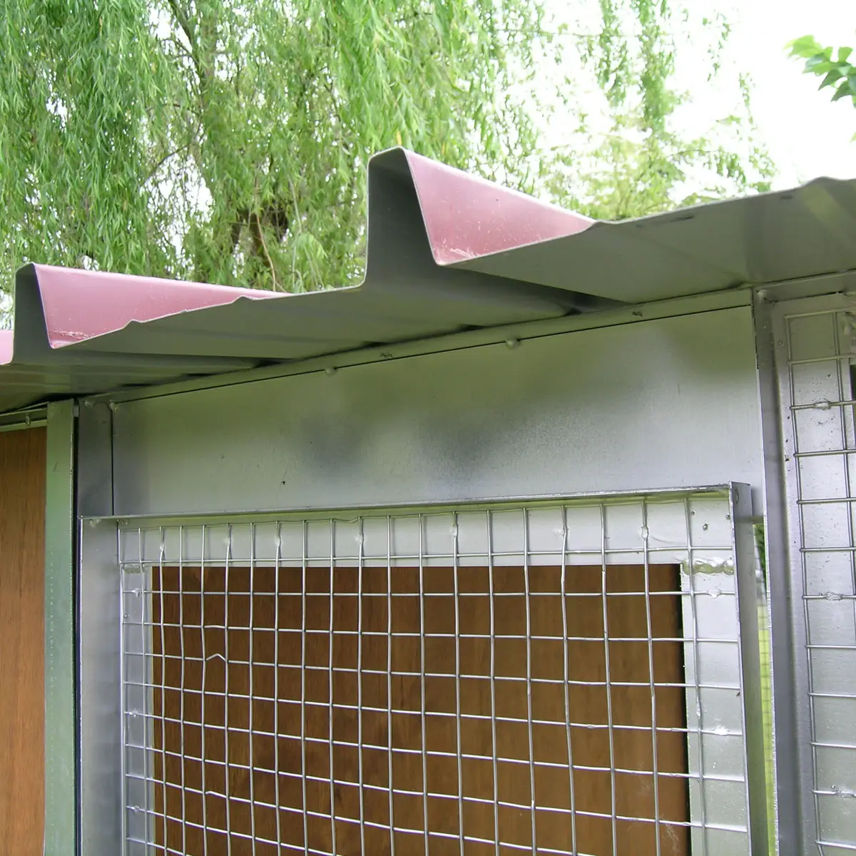 - Der Außenbereich ist aus verzinktem Maschendraht (Maschenweite: 19 x 19 mm; Drahtstärke 1,4 mm) gefertigt.