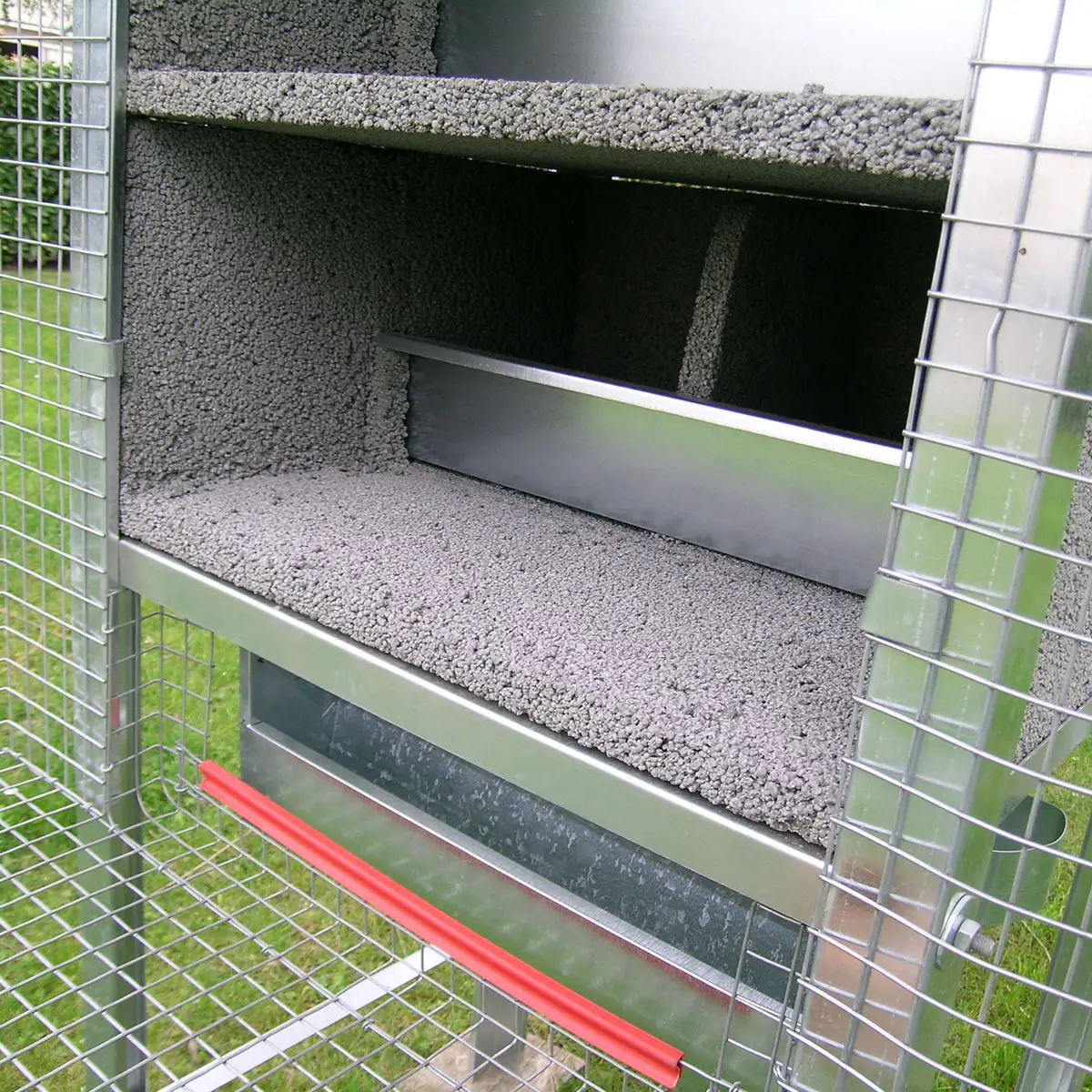 - Nester aus Blähton, ausgestattet mit einer herausnehmbaren Platte zur einfachen Reinigung und Wartung. Blähton ist ein haltbares, gut isolierendes und leicht zu desinfizierendes Material.