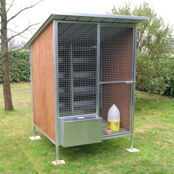 - Die Voliere steht auf stabilen Beinen und ist 23 cm vom Boden erhöht um eine leichte Reinigung zu ermöglichen.