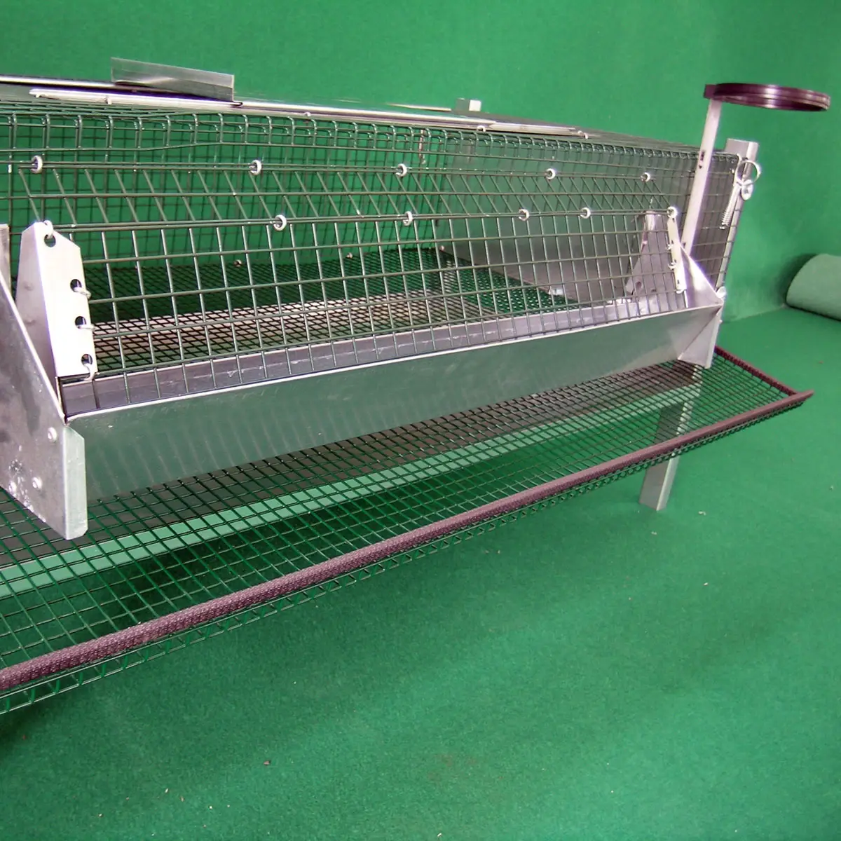 - Käfig für Legewachteln, komplett aus verzinktem Blech und grünem, kunststoffbeschichtetem Drahtgitter.