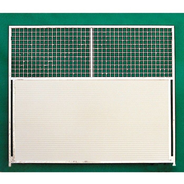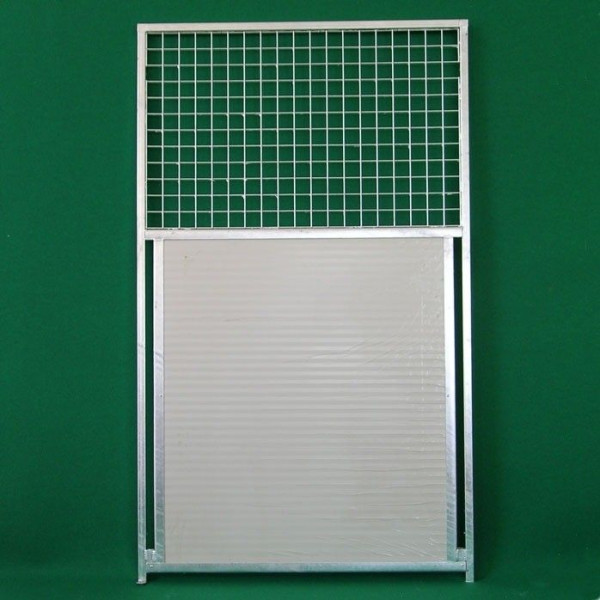 - Gitterpaneel mit einem durch eine Isolierpatte geschlossenen unteren Teil. Ideal als Schutz vor Witterungseinflüssen oder als seitliche Abtrennung der Zwinger um zu verhindern, dass die Hunde sich gegenseitig sehen können.